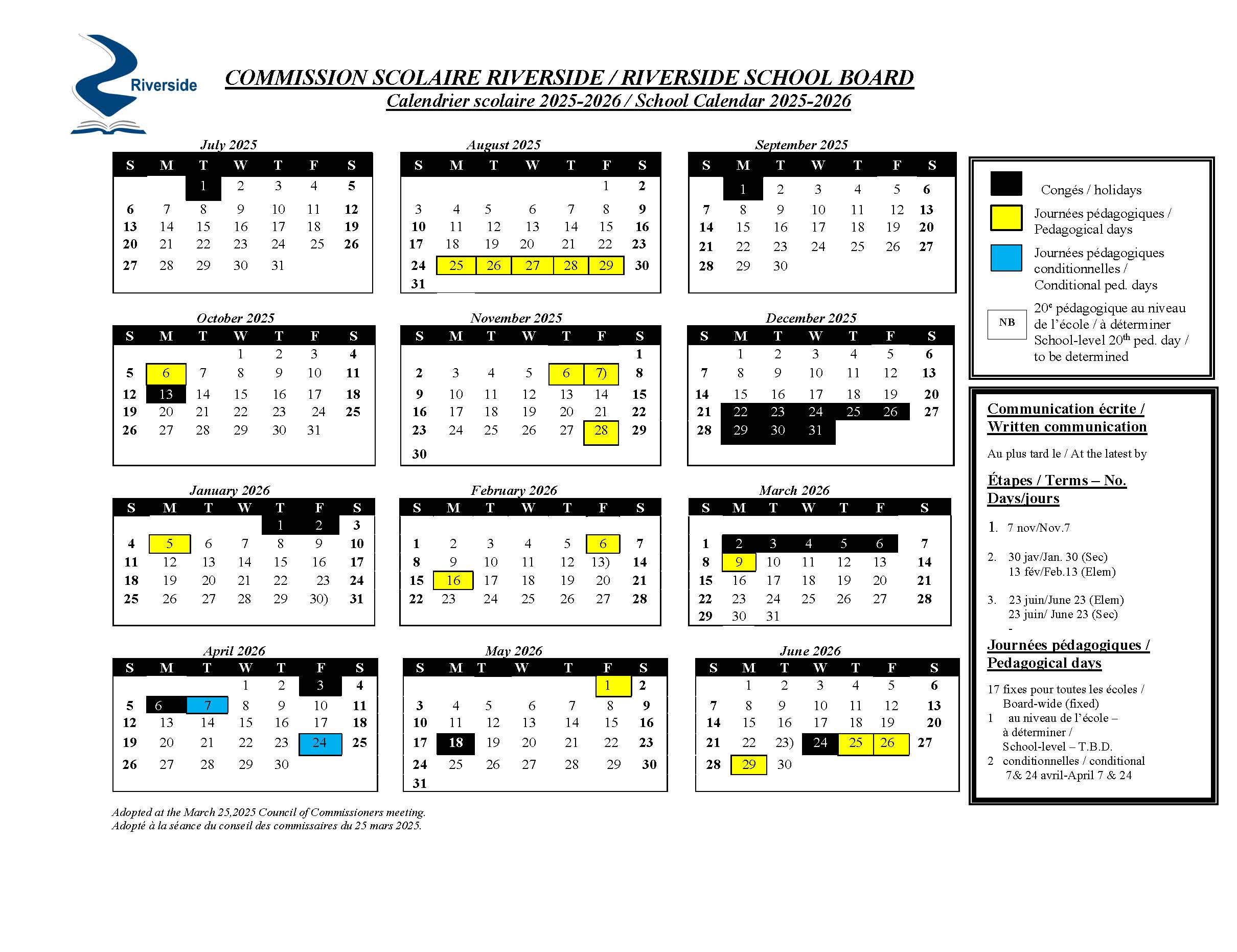 The Conditional Pedagogical Day originally scheduled for April 30, 2026, has been moved to April 24, 2026. As a result, April 30, 2026, will now be a regular school day for elementary and high school students*.
