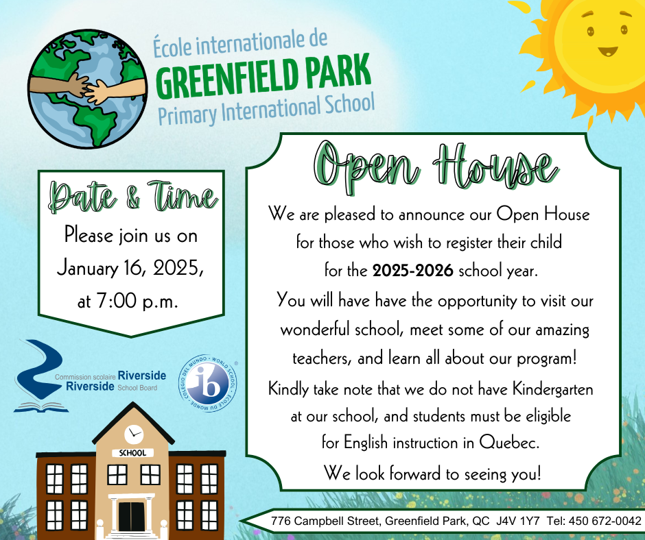 16janv19 h 00 min20 h 30 minOpen House 2025-2026 - Greenfield Park Primary International SchoolOpen House Event - 2025-2026 - Greenfield Park Primary International School19 h 00 min - 20 h 30 min(GMT-05:00) Event Type Greenfield Park Primary International School,Open House